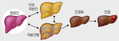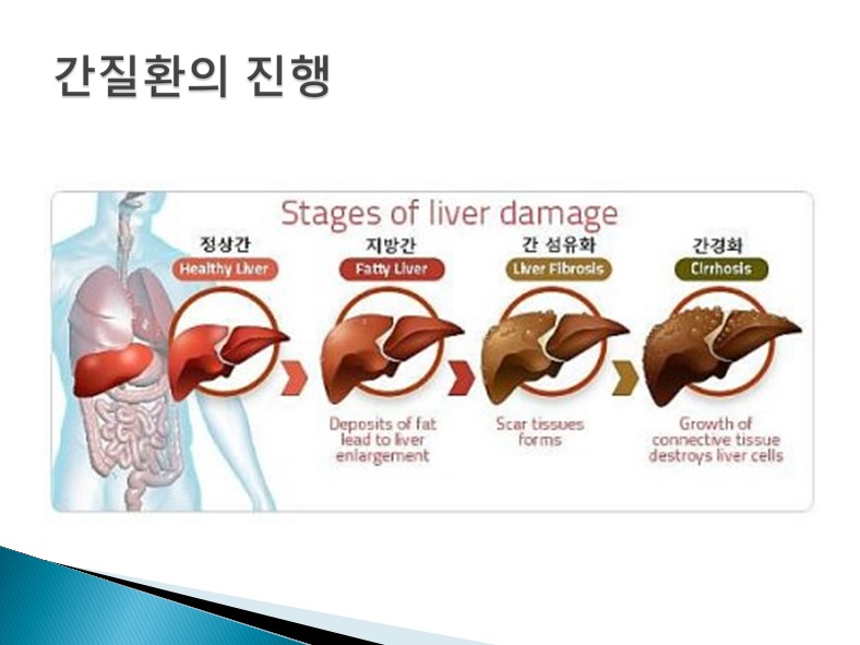 그 밖에도 자가면역질환에 의한 간질환, 비알코올성 지방간, 철의 대사장애로 인한 혈색소 침착증 등이 있죠.