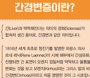 간경화라 부르든 간경변이라 부르든 간에 간이 강인하게 되면 큰일이 발생한 것이죠. 정상 기능을 가능한 간세포의 수가 적어지면 단백질 합성, 해독작용 등 간 기능에 장애가 유발되고, 간이 굳어져 간내 혈액순환이 참 어려워짐에 따라 간 문맥압이 높이고, 황달, 위장관 출혈, 복막염, 간성 혼수, 복수, 하지 부종 등 여러 합병증이 일어합니다.