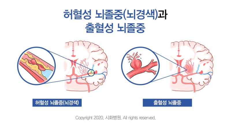 뇌경색과 뇌출혈으로 나눌 수 있는 뇌졸중은 뇌경색이냐 뇌출혈이냐에 따라 증상의 양태가 같지않게 나타납니다.