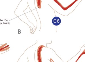 터진 디스크가 팔로 내려가는 신경을 자극하여 어깨부터 팔꿈치, 팔뚝, 손까지 저리고 당기고 아픕니다.