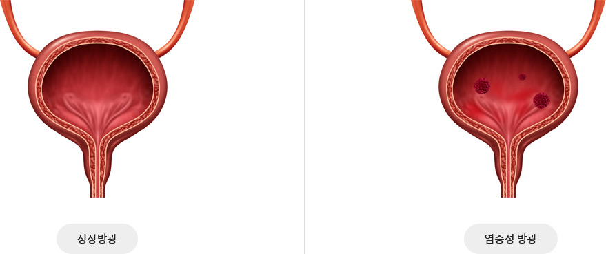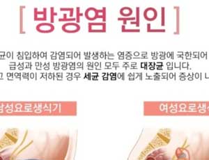 방광염은 방광 점막에 염증이 생기는 증상으로 대부분내부에서 생기는 감염이 아닌 바깥쪽에서 소변으로 인한 감염에서 많이 발생 하며, 과로나 질병 등이 원인이 되어 면역력이 떨어졌을 때도 나타나게 되는 경우 있습니다.