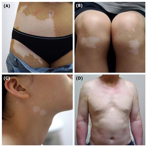 한 부위에 한개나 여러 개의 흰 반점이 일으키게 되는 국소형, 몸의 좌우 어떠한 한쪽에서만 띠처럼 생기는 분절형, 전신에 넓게 퍼지게 되는 전신형, 얼굴과 손발 끝 부분에 생겨나게 되는 선단 안면형이 있습니다.
