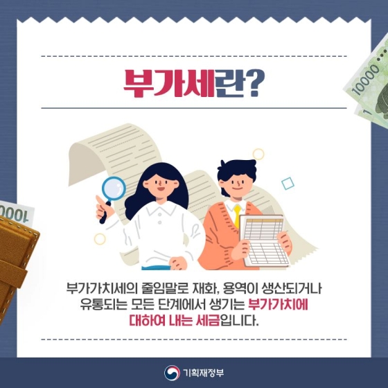 부가가치세란 상품(재화)의 거래나 서비스(용역)를 전파하는 모든 사업자가 신고 및 납부해야 되는 의무라고 합니다.