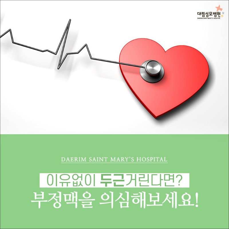 가슴이 두근거리는 증상이 걸핏하면 일어납니다. 놀라거나 흥분한 경우 혹은 운동 도중에 가슴이 뛰는 것은 정상적인 생리 반응이죠. 그렇지마는 이러한 환경 변경 없이 뜬금없이 가슴이 뛴다거나 가슴이 덜컹거리는 것 같은 증상이 있으면하는 부정맥을 신용하지 않아야 합니다. 신경쓰이는 사람들은 부정맥이 일어날 때 마치 가슴이 찌르는 듯 아픈 통증을 느끼기도 합니다.