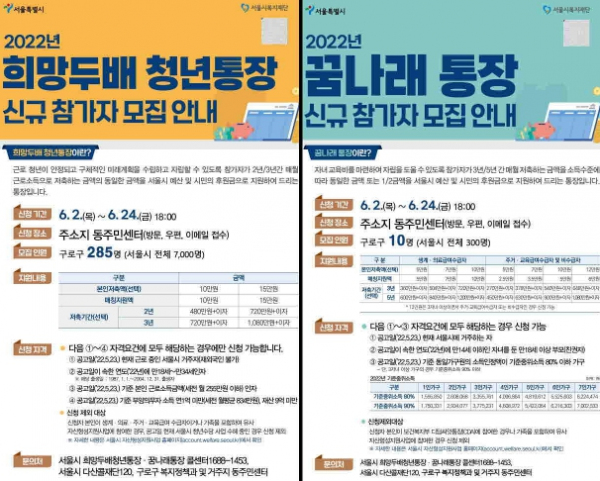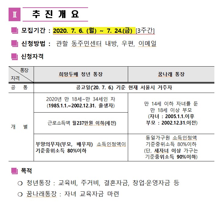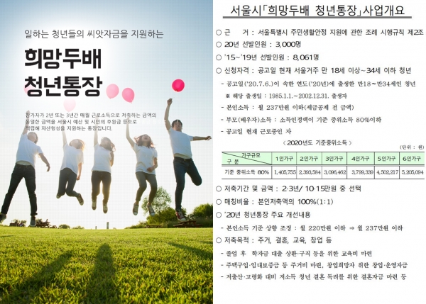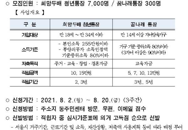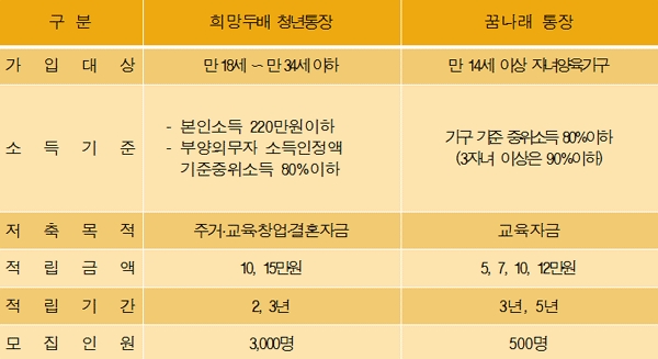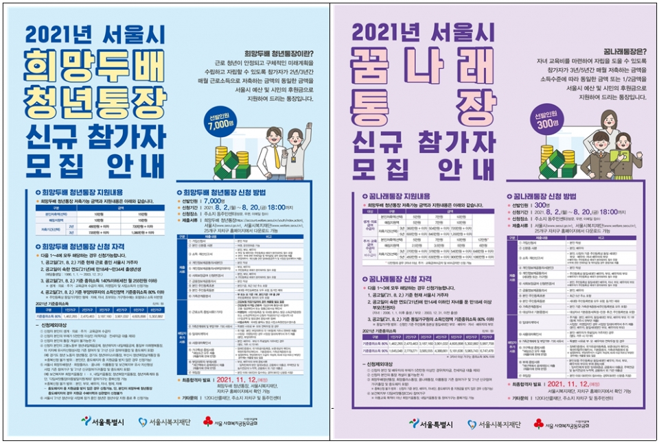 [서울시] 희망두배 청년통장, 희망플러스 통장, 꿈나래 통장, 이룸통장 [보건복지부] 디딤씨앗통장