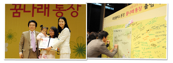 꿈나래통장사업은 참여자가 자녀 교육비 마련을 위해서 달마다 일정 비용을 3년 또는 5년간 저축하면 소득수준에 따라 본인 저축액과 똑같은 비용(생계·의료급여 수급자) 또는 1/2 가액(주거·교육 급여 수급자 및 비수급자)을 서울시와 민간후원금으로 적립·지원이 됩니다.