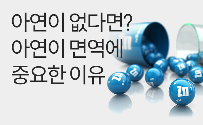 면역력이 약해지는 이유는 면역 세포의 활성도가 떨어지기 때문입니다. 아연은 면역 세포를 촉진시키는 신진대사의 활성화과 세포 분열의 향상을 통한 면역력 강화에 효과가 좋고요.