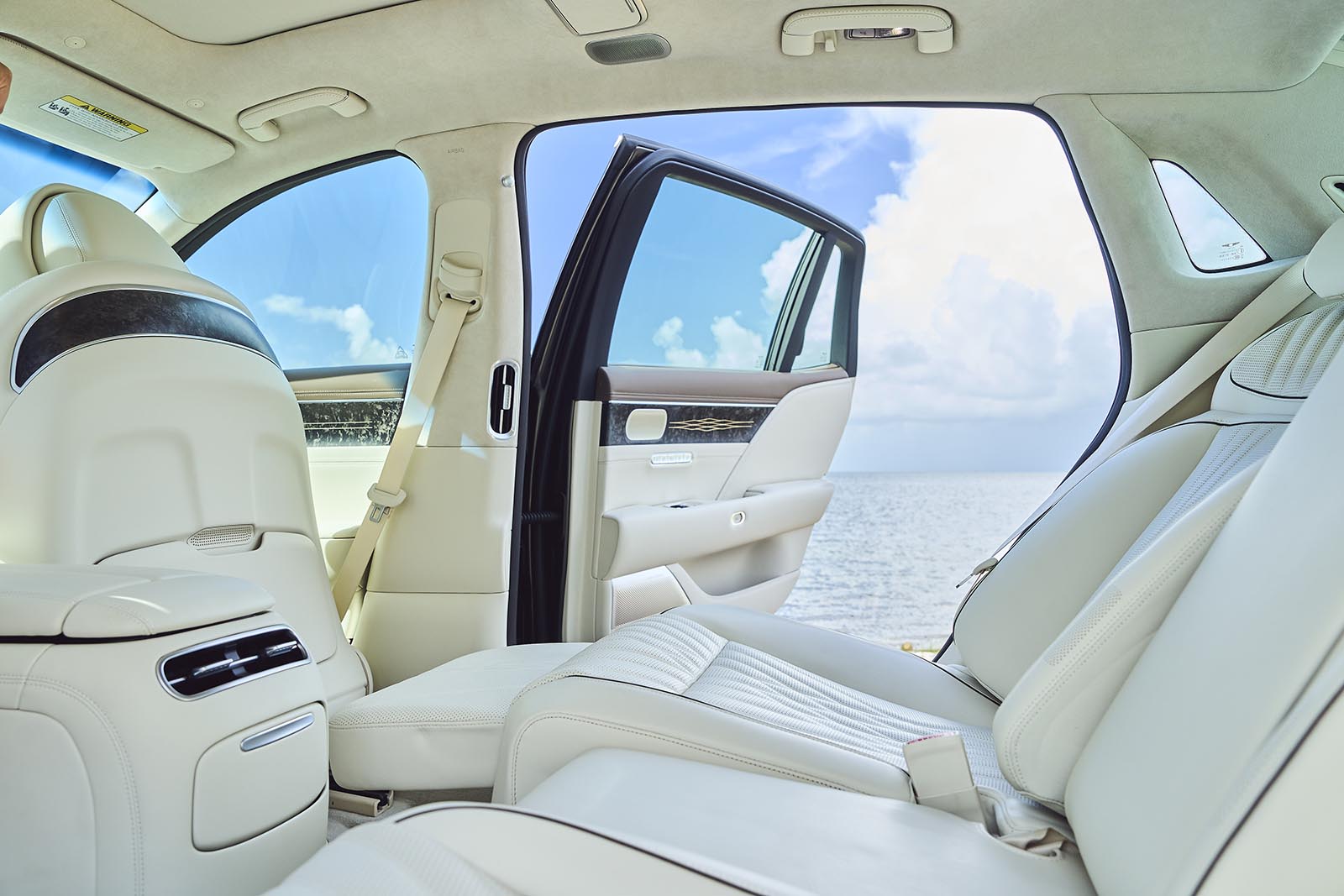 G90 리무진은 기존 G90보다 전장이 290mm 늘어나 더욱 웅장한 외관과 여유로운 뒷좌석 공간을 확보했으며, 세미 애닐린 가죽 시트와 퍼스트 클래스 VIP 시트 등의 최고급 사양이 적용되어 높은 품격과 안락한 승차감을 갖춘 것이 특장점이죠.