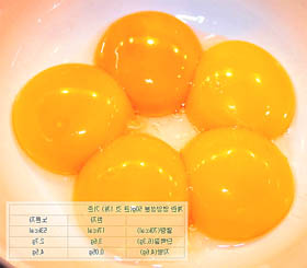 달걀노른자에는 비타민B군에 소속되는 비오틴 성분과 단백질이 많이 포함되어 있다고 하는데 비오틴 성분은 단백질과 지방의 정상적 신진대사에 무조건적인 물질로서 탈모증이나 비듬 아니라면 지루성 피부염 치유에 도움이 되겠습니다.