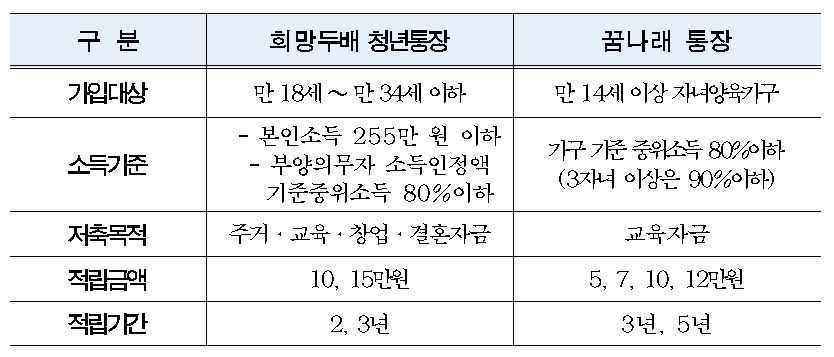 자녀를 양육하는 저소득가구를 위한 '꿈나래통장' 참가자도 같이 모집하더라고요.